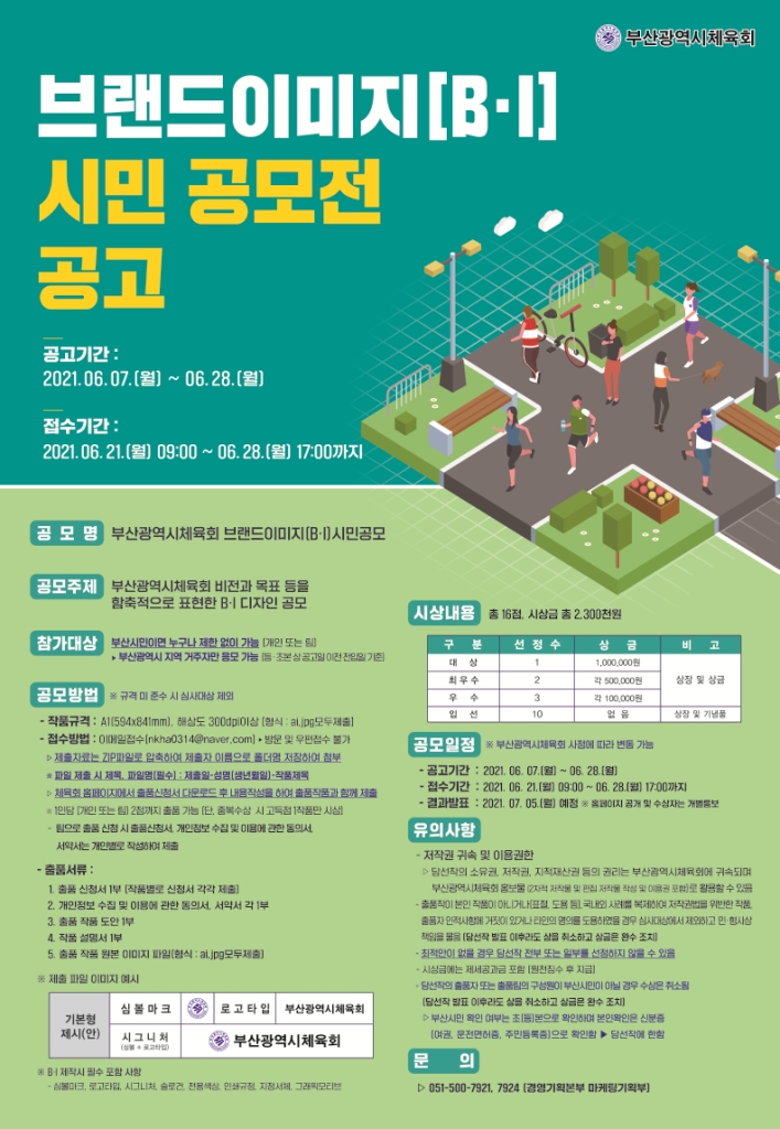 - 공모내용 : 부산광역시체육회 비전과 목표 등을 함축적으로 표현한 B.I 디자인 공모